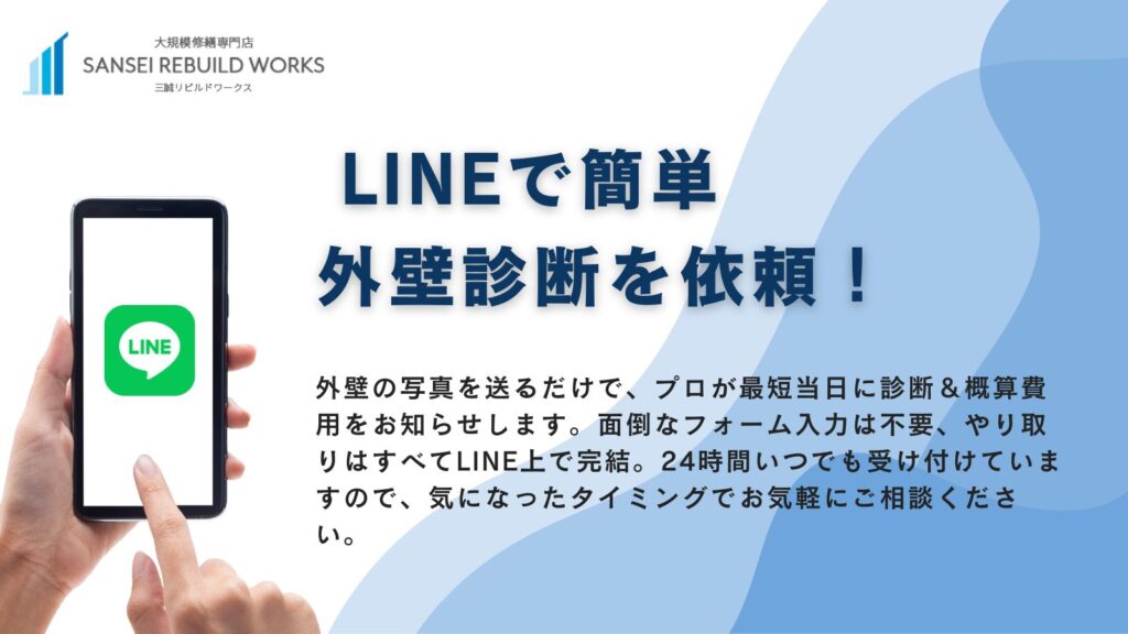 建築基準法第12条に基づき、マンションの外壁等については、5年に一度の定期的な調査(打診調査など)が義務付けられています。